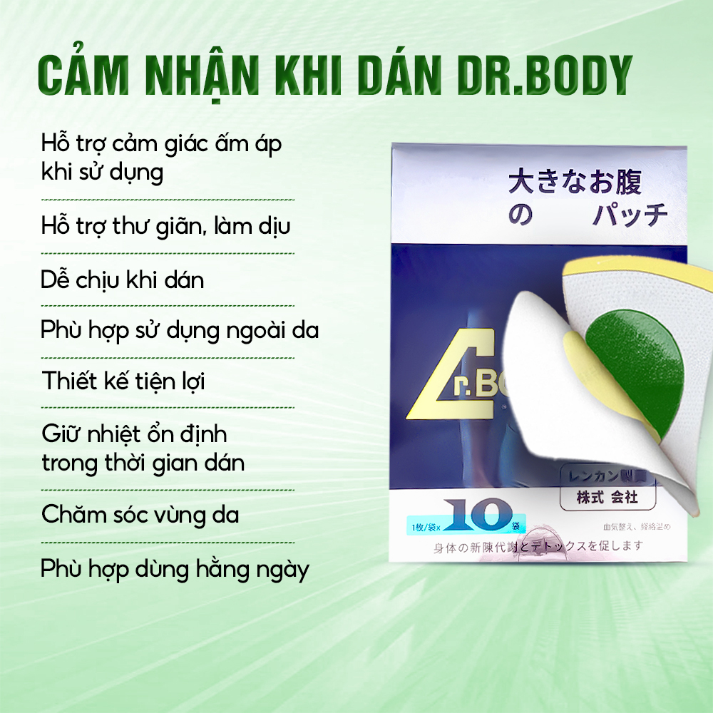MIẾNG DÁN DR.BODY [10 Miếng/Hộp] - CHĂM SÓC NHẸ NHÀNG, GIÚP LÀM ẤM, THÀNH PHẦN THẢO MỘC TỰ NHIÊN, TẬN HƯỞNG CẢM GIÁC THOẢI MÁI MỖI NGÀY